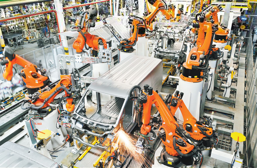 10月9日,重慶長安跨越商用車有限公司生產(chǎn)線上,工業(yè)機(jī)器人井然有序工作。 在西渝高鐵康渝段重慶樞紐站建設(shè)現(xiàn)場,500余名建設(shè)者抓緊路面施工;在兩江新區(qū)龍興古鎮(zhèn),國網(wǎng)重慶市北供電公司工作人員仔細(xì)核查變壓器隱患……節(jié)后上班第一天,我市各行各業(yè)以“時不我待”的緊迫感,按下工作“加速鍵”,為完成全年目標(biāo)奮力沖刺?!?/p>