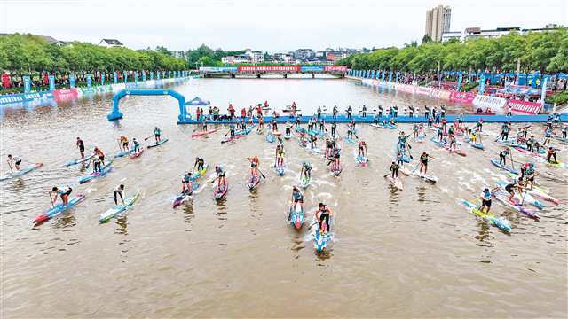 10月19日,墊江縣高安鎮(zhèn),參賽選手在賽場競技(無人機(jī)照片)。 當(dāng)天,2025第四屆成渝地區(qū)雙城經(jīng)濟(jì)圈槳板邀請賽暨重慶市第五屆槳板公開賽在高安鎮(zhèn)龍溪河畔開賽,來自川渝地區(qū)的300余名參賽選手逐浪賽場?!?/p>