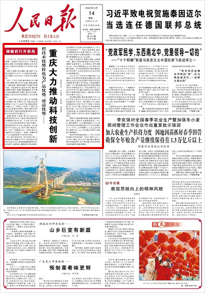 重慶干部群眾牢記囑托,著力提升產(chǎn)業(yè)鏈供應(yīng)鏈現(xiàn)代化水平,大力推動(dòng)科技創(chuàng)新,加快關(guān)鍵核心技術(shù)攻關(guān),打造未來(lái)發(fā)展新優(yōu)勢(shì)。