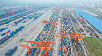 重慶團(tuán)結(jié)村中心站,華晨斯威汽車銷售公司的貨品裝滿了整整一列火車。
