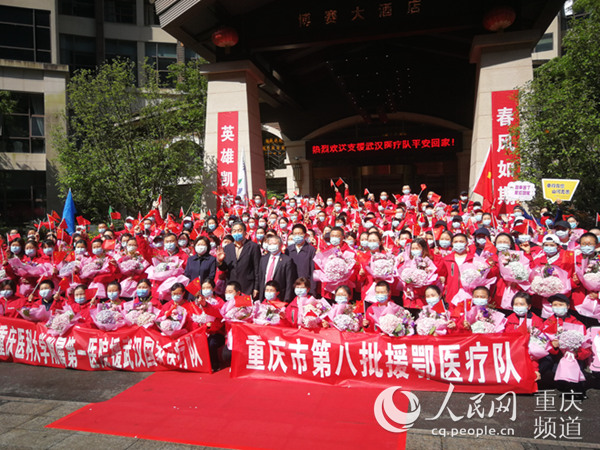 重慶市第8批164名支援湖北醫(yī)療隊隊員來自重慶醫(yī)科大學附屬第一醫(yī)院,醫(yī)療隊2月13日奔赴武漢,先后在武漢第一醫(yī)院、武漢人民醫(yī)院東院區(qū)戰(zhàn)疫一線工作,3月29日結束戰(zhàn)疫工作回到重慶。