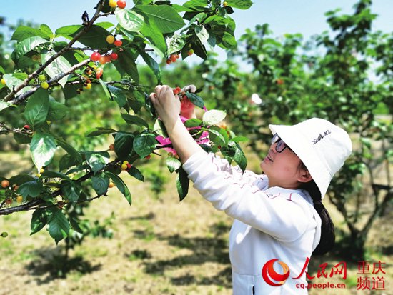 游客采摘櫻桃。北碚區(qū)委宣傳部供圖