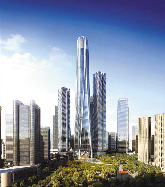 重慶第一高樓群江北嘴國際金融中心效果圖。(融創(chuàng)華城江北嘴國際金融中心項(xiàng)目方供圖)