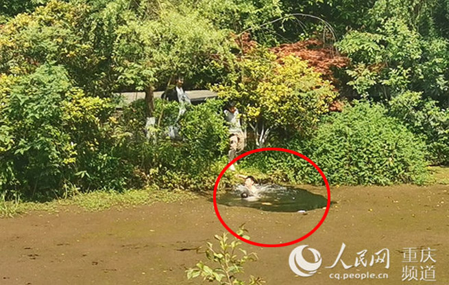 4月9日下午14時(shí)左右,在重慶市照母山森林公園里,一名小男孩不小心掉入隱蔽的水塘中,眼看頭部漸漸被塘水淹沒(méi),生命危在旦夕。