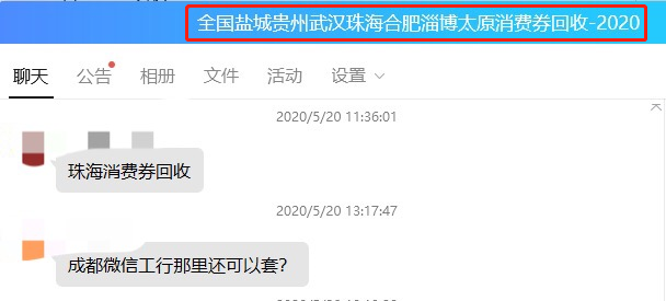 “武漢消費(fèi)券有沒有收的”“7折收貴州消費(fèi)券”“有誰能幫忙套現(xiàn)的,六折”……