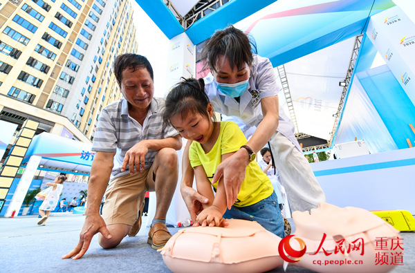 市民學(xué)習(xí)體驗心肺復(fù)蘇項目。重慶市應(yīng)急管理局供圖