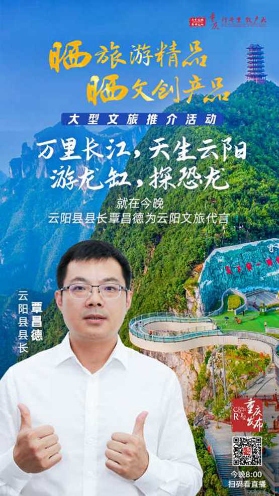 “云陽天生麗質(zhì),既有顏值又有氣質(zhì),不管是天下龍缸還是千年張飛廟,都是游客們來云必打卡之處。在端午晚的直播中,覃縣長將通過VCR等形式,向全國網(wǎng)友展現(xiàn)云陽幾大核心景區(qū)的優(yōu)美風光和人文景觀。龍缸景區(qū)新開放的云端系列項目,也將在這次直播中與大家集體見面。總之,我們會將‘長江三峽最后的香格里拉’最精彩的景色一并呈上,供市民游客了解選擇,大美云陽,‘游’你做主!”該負責人介紹說。