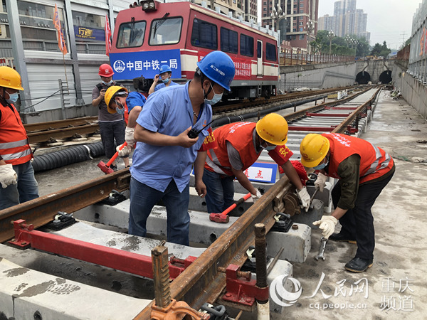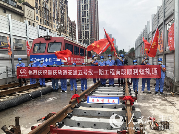 人民網(wǎng)重慶6月28日電(胡虹)27日下午,重慶軌道交通5號線一期工程南段,隨著最后一組軌排鋪設(shè)到位,該段石橋鋪至跳蹬段順利實現(xiàn)“短軌通”。