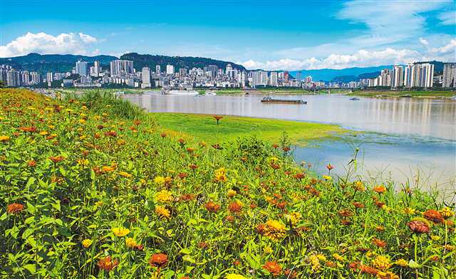 盛夏時(shí)節(jié),萬州在長(zhǎng)江南北消落帶打造了10萬平方米的絢爛花海,硫華菊、波斯菊、百日草等數(shù)十種鮮花爭(zhēng)艷,美不勝收。特約攝影 冉孟軍/視覺重慶