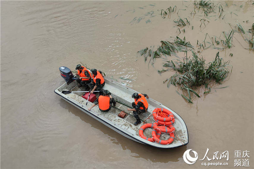 在接到當(dāng)?shù)卣木仍埱蠛,武警重慶市總隊執(zhí)勤五支隊官兵第一時間攜帶救援裝備器材出動,聯(lián)合地方相關(guān)部門迅速研判情況、制定施救方案,運(yùn)用2艘搜救艇及1架無人偵查機(jī)沿事發(fā)地上下游3公里范圍內(nèi)搜救。
