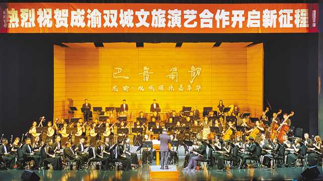 “峨眉山月半輪秋,影入平羌江水流……”7月24日晚,伴隨著國家二級演員、重慶歌舞團(tuán)民族男高音王澗泉的激情朗誦,由重慶民族樂團(tuán)與成都民族樂團(tuán)共同合作演出的《巴音蜀韻——成渝雙城國樂嘉年華》民族管弦樂音樂會在重慶國泰藝術(shù)中心隆重上演。