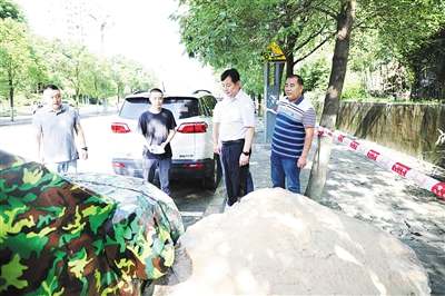 萬盛經(jīng)開區(qū)城市管理局局長譚彬(右二)帶隊開展“馬路辦公”。余江波 攝