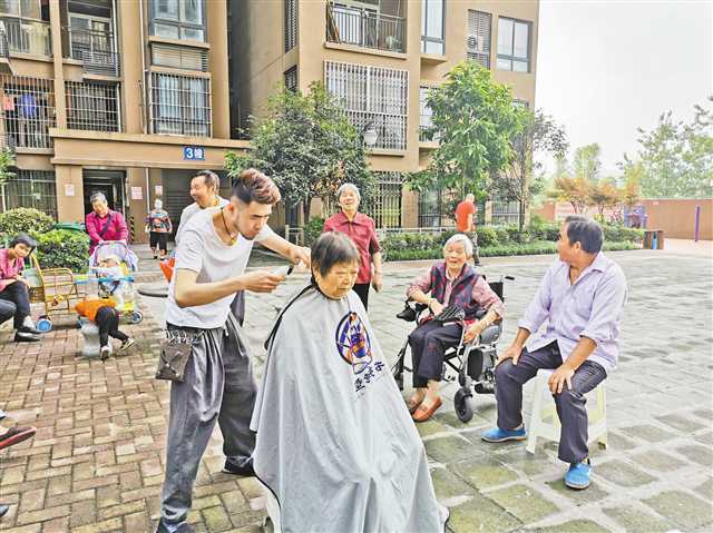 彭彬洋正在為70歲以上老人免費(fèi)理發(fā)。(百佳園社區(qū)供圖)
