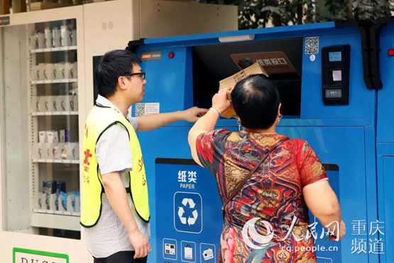 志愿者指導居民正確垃圾分類。朱云卿 攝