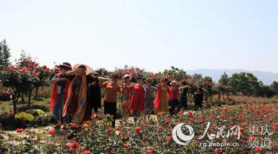 游客在銅梁區(qū)西郊花語(yǔ)悠游谷的玫瑰島拍照。銅梁區(qū)融媒體中心供圖