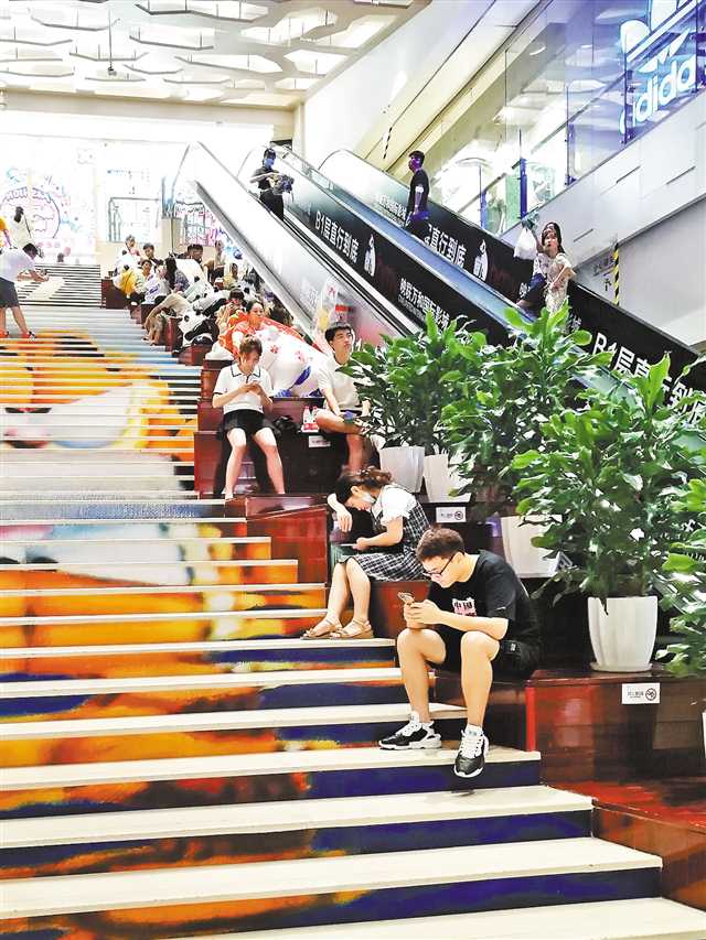 8月4日,不少市民在國泰廣場納涼。記者 崔曜 攝/視覺重慶