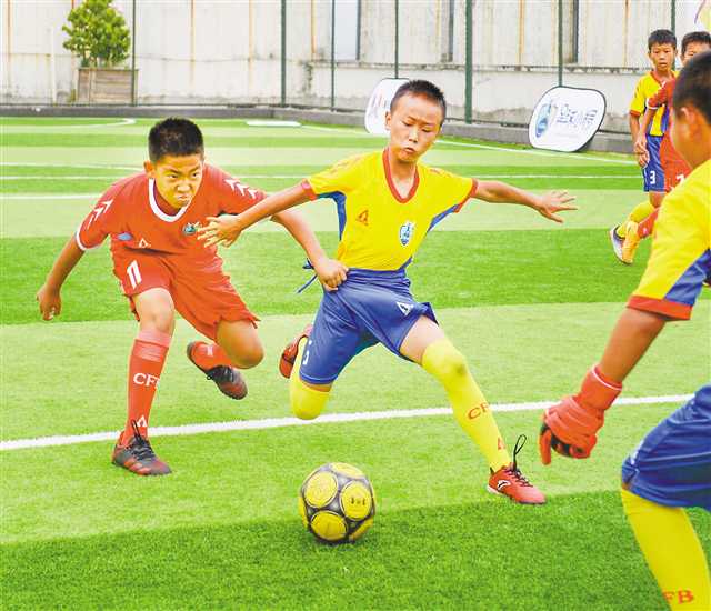 8月8日,高新區(qū)虎溪街道石牛崗社區(qū),青少年正在足球比賽中奮力拼搶。記者 張錦輝 實(shí)習(xí)生 唐苓鈴 攝/視覺(jué)重慶