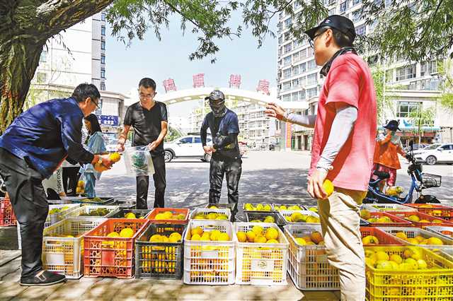 “這瓜好甜!薄盀鹾D芊N出華萊士甜瓜?還是在沙漠里種出來的!薄8月10日上午,在內(nèi)蒙古烏海市德順祥庭小區(qū)對面,10余筐黃燦燦的華萊士甜瓜擺上街頭,很快就吸引了不少市民駐足品嘗、購買。