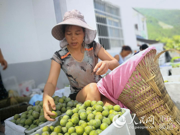 巫溪縣酒泉村的村民正在分揀脆李。 巫溪縣委宣傳部供圖