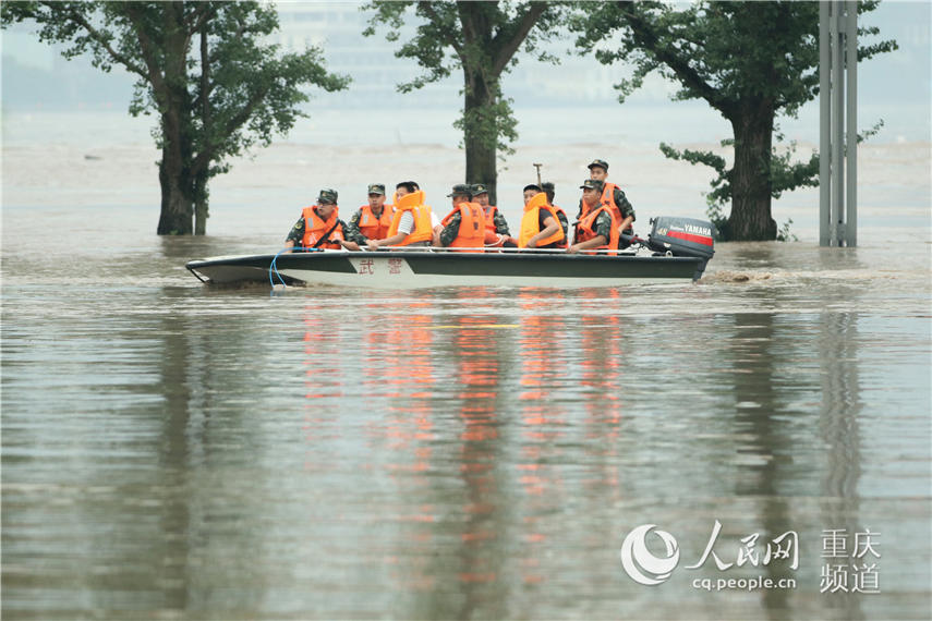 19日16時許,接重慶市應(yīng)急局通報,南岸區(qū)雞冠石、海棠溪、龍門灘、南坪鎮(zhèn)、彈子石、南坪街道等9個街鎮(zhèn)洪水多點爆發(fā),該總隊船艇支隊聞汛而動緊急增援。到達(dá)任務(wù)區(qū)域后,官兵攜帶專業(yè)救援裝備,兵分3路臨街搜救還未及時撤離的群眾。