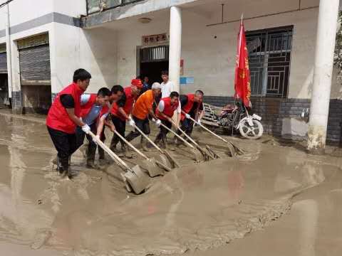 洪水漸退,受災區(qū)域聚集大量淤泥,全區(qū)各個部門單位迅速組建黨員志愿隊,幫助受災地區(qū)開展災后重建,黨員干部沖鋒在前、聚心凝力,人民群眾備受鼓舞、同向而行,主動參與災后重建志愿服務。