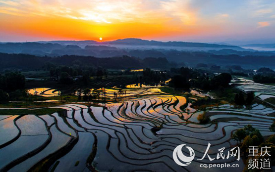 清晨的鹽井梯田。石溪鎮(zhèn)供圖