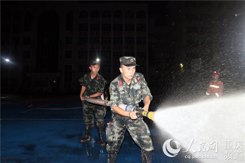 圖為武警重慶市總隊(duì)執(zhí)勤第一支隊(duì)勤務(wù)保障大隊(duì)官兵清淤現(xiàn)場(chǎng)。郭傳伍攝
