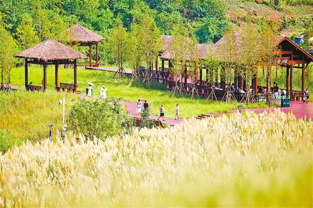 環(huán)境優(yōu)美的草海灣公園吸引眾多市民前往休閑。記者 羅斌 攝\視覺重慶