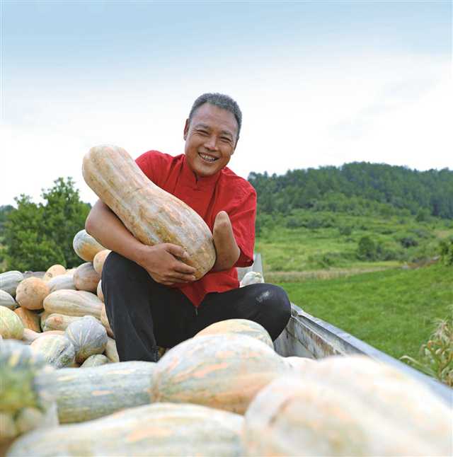 楊忠是脫貧戶,今年,在他的帶動下,趙昌信種了10畝蜜本南瓜。像趙昌信一樣,今年在楊忠的帶動下,當(dāng)?shù)?0多戶村民種植了蜜本南瓜,共計1300多畝。