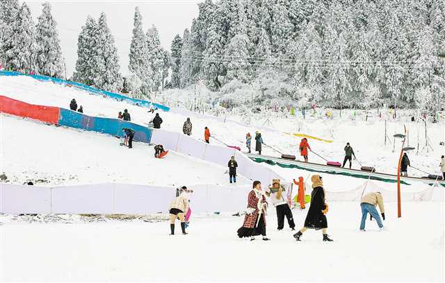 1月2日,游客在豐都縣南天湖冰雪樂園游玩。元旦小長假第二天,當(dāng)?shù)赜瓉砹松先f游客。通訊員 陳勇 攝/視覺重慶