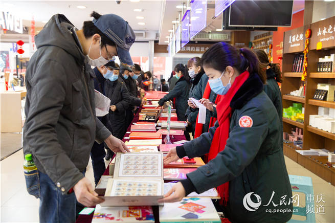 來(lái)自浙江的年輕情侶林峰和鄧麗,原本是到解放碑“打卡”游玩,偶然間在解放碑主題郵局看到生肖郵票發(fā)行活動(dòng),倆人也興奮地排起了長(zhǎng)隊(duì)!凹依锏母改敢恢倍加袨楹筝吺詹剜]冊(cè)、紀(jì)念幣的習(xí)慣。今天正好遇到這個(gè)活動(dòng),給家人買一份回去當(dāng)做新年禮物,表達(dá)一下我們晚輩的祝福!编圎愓f(shuō)道。