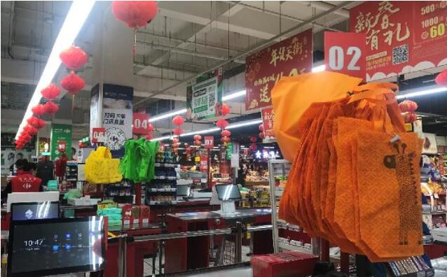 在各大超市,無(wú)紡布購(gòu)物袋和可降解塑料袋已經(jīng)成為主角。