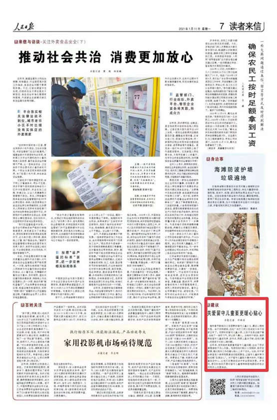 近年來(lái),黨和政府高度重視留守兒童問(wèn)題,出臺(tái)了很多政策措施給予關(guān)心關(guān)愛(ài)。考慮到他們?nèi)鄙俑改概惆、較早自我管理,建議相關(guān)工作在暖心貼心上多下功夫。比如,村干部教會(huì)家里老人使用視頻通話(huà)功能或微信,讓留守兒童時(shí)常與父母遠(yuǎn)程“見(jiàn)面談心”。對(duì)于留守兒童較為集中的村,可建立兒童活動(dòng)中心,讓他們?cè)诩w活動(dòng)中學(xué)會(huì)團(tuán)結(jié)友愛(ài)。歲末年初,要及時(shí)組織開(kāi)展對(duì)留守兒童等特殊困難群體的走訪慰問(wèn)和關(guān)心關(guān)愛(ài)活動(dòng)。