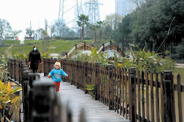 “慢點兒跑,莫摔倒了!奔易缮骄霸沸^(qū)的居民周群帶著孩子高興地在公園里玩耍,還不時教孩子辨別各種植物,并用手機(jī)記錄下他的可愛模樣,孩子稚嫩的笑聲回蕩在公園里。