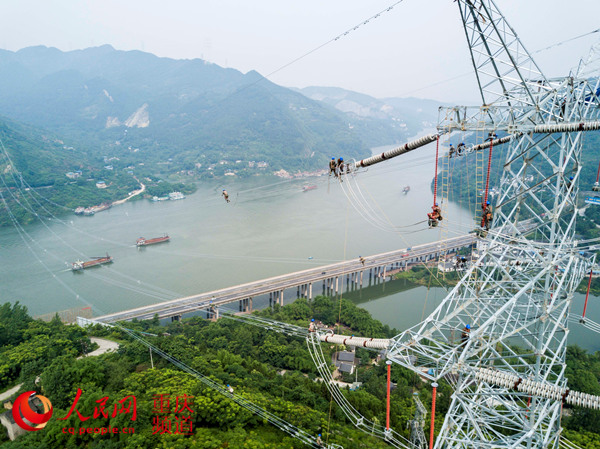 國網(wǎng)重慶市電力公司員工在川渝電網(wǎng)第三通道500千伏資銅線(四川資陽-重慶銅梁)開展作業(yè)。 劉潺攝