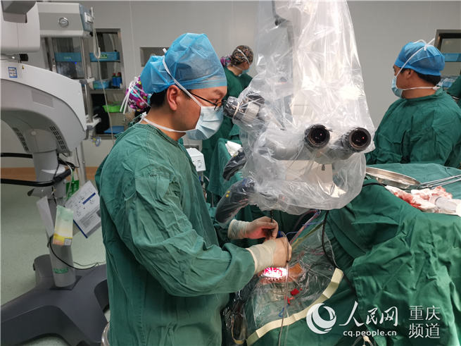 第四批組團式援藏專家陳晉為患者手術(shù)。 重慶市衛(wèi)健委供圖
