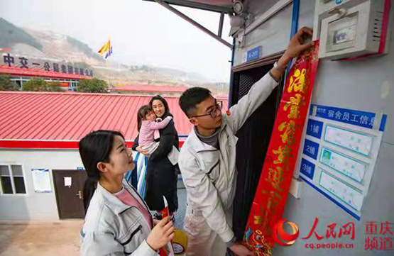 人民網(wǎng)重慶2月2日電 1日,萬州高速環(huán)線鹿山互通中交一公局四分部員工宿舍里,員工劉夢和孫曉莉忙著張羅年貨、貼春聯(lián),年關(guān)將至,年味彌漫。
