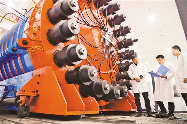 2月7日,重慶大學(xué)科研人員在深部煤巖工程多功能物理模擬試驗系統(tǒng)工作。記者 盧越 攝/視覺重慶