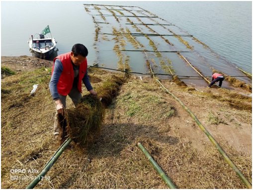 “每年3到6月是魚類產(chǎn)卵期。通常情況下,魚兒會將卵產(chǎn)在江邊巖壁的青苔上,但因其附著力不強(qiáng),被水流沖散后會大大影響成活率,人工魚巢恰好解決了這一難題。”長江重慶江津段鴻鵠護(hù)漁志愿隊隊長劉鴻介紹,志愿者們將水游草捆扎成束,一束束用竹框架固定起來,再將一個個這樣的竹框架投入江中,用竹竿連接成網(wǎng)格,人工魚巢就建成了。劉鴻稱,人工魚巢起到了水草的作用,粘附性強(qiáng),魚兒在此產(chǎn)卵成活率高,還能避免其他天敵的襲擾。同時,人工魚巢靠近岸邊,遠(yuǎn)離主航道,既利于魚卵孵化,也不會影響正常航運。