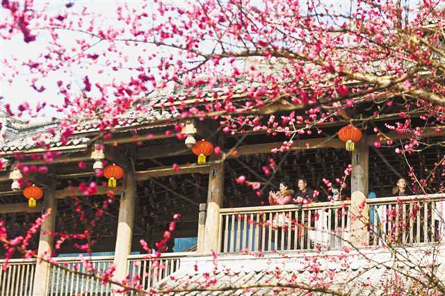 2月14日,游客在黔江區(qū)濯水景區(qū)賞梅。 特約攝影 楊敏/視覺重慶