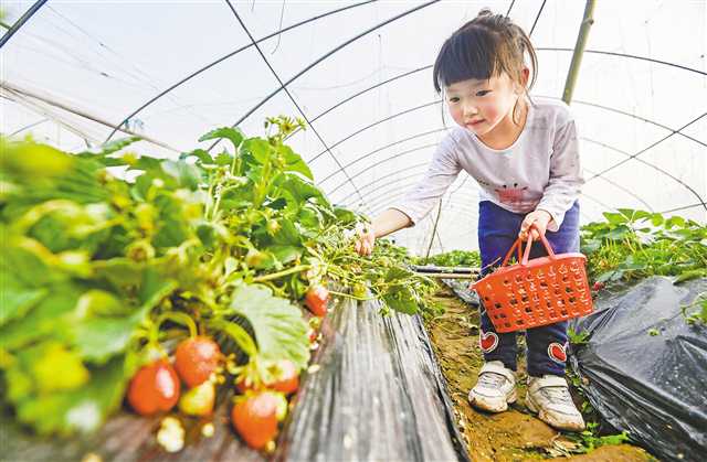 2月14日,榮昌區(qū)吳家鎮(zhèn),小朋友正在草莓基地采摘草莓,感受鄉(xiāng)村魅力。首席記者 龍帆 攝/視覺重慶