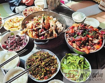 籌集一個月的土雞蛋、一大早起來炒好的泡椒兔、 前一天做好的鹵牛肉、年前備下的百斤臘肉……