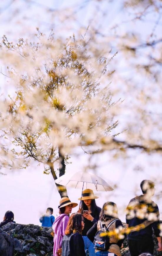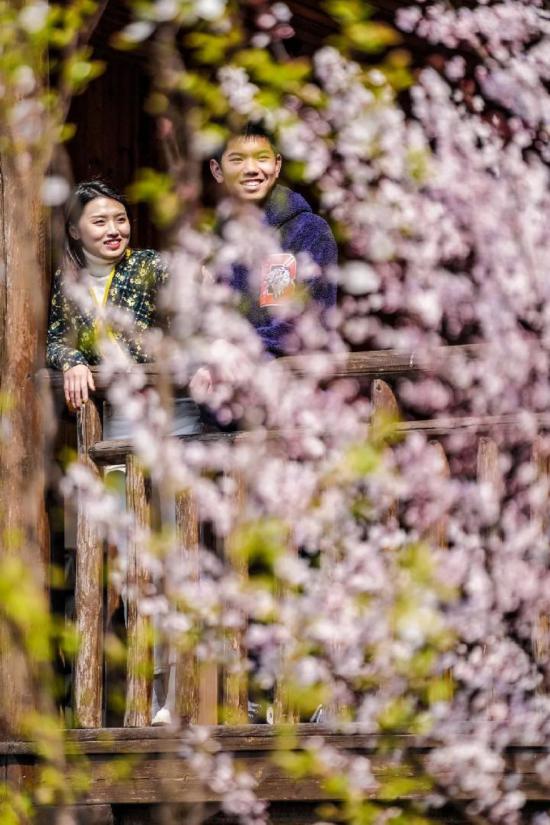 2月21日,游客在渝北區(qū)大盛鎮(zhèn)觀賞櫻花,花好景好露出的笑容也格外好。羅嘉 攝
