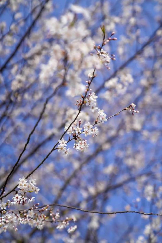 雪白的櫻花在藍(lán)天的襯托下分外美麗。羅嘉 攝