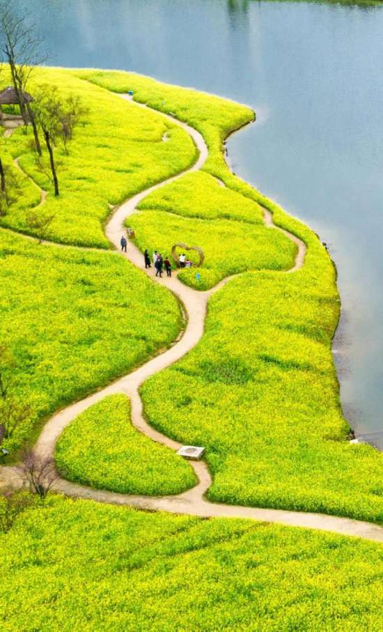 巴南區(qū)二圣鎮(zhèn)天坪山云林天香景區(qū),市民暢游油菜花海。鄒飛 攝