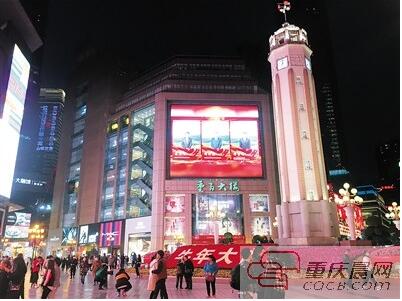 昨天,解放碑、觀音橋商圈地標(biāo)性LED大屏紛紛亮燈,向全國(guó)脫貧攻堅(jiān)先進(jìn)個(gè)人致敬。上游新聞?dòng)浾?高科 李化 攝