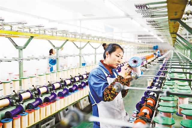 2月26日,女工在黔江區(qū)工業(yè)園區(qū)花神絲綢有限公司生產(chǎn)車間勞作。春節(jié)復(fù)工復(fù)產(chǎn)后,黔江區(qū)工業(yè)園區(qū)協(xié)助絲綢公司,組織人力開足馬力生產(chǎn),加工海外訂單,確保員工穩(wěn)崗增收,按時(shí)按質(zhì)完成訂單!√丶s攝影 楊敏/視覺重慶