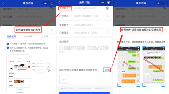 為了便于網(wǎng)友舉報詐騙信息,騰訊110打造了便捷舉報平臺。進入騰訊110小程序、公眾號后,點擊“我要舉報”,可以看到“違法違規(guī)信息、網(wǎng)絡(luò)詐騙”等7大舉報類型,共計55個子類。根據(jù)提示上傳證據(jù)截圖,填寫“違規(guī)賬號、受害賬號、舉報描述”等,便可完成舉報。如有疑惑,也可以查看“舉報類別解釋”。