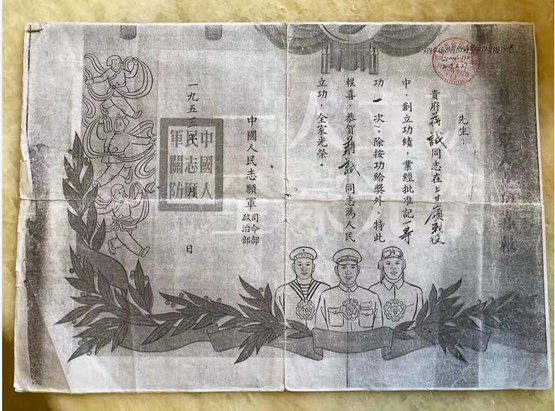 人民網重慶3月9日電 “1952年上甘嶺戰(zhàn)役中,他帶領班里戰(zhàn)士們在嚴密敵炮封鎖線……身負重傷不下火線,配合步兵完成了任務,對戰(zhàn)斗勝利起了重大作用!痹谥貞c市合川區(qū)蔣誠家中,一份《革命軍人立功喜報》復印件上清楚見證著他的經歷和榮光。