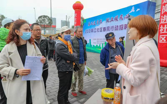 人民網(wǎng)重慶3月9日電 3月9日上午,寸灘街道在蘭溪社區(qū)新時代文明實(shí)踐站廣場舉辦了一場專題招聘會,把120個工種1100余個就業(yè)崗位,送到居民“家門口”,為轄區(qū)有就業(yè)創(chuàng)業(yè)意愿的城鎮(zhèn)就業(yè)困難人員、復(fù)員退伍軍人等提供精準(zhǔn)的就業(yè)服務(wù)。此次線下招聘會共有150余人達(dá)成初步就業(yè)意向,其中,重慶朗銳汽車零部件有限公司、重慶新正大物業(yè)集團(tuán)股份有限公司現(xiàn)場確定10余名求職者可以立即上崗。
